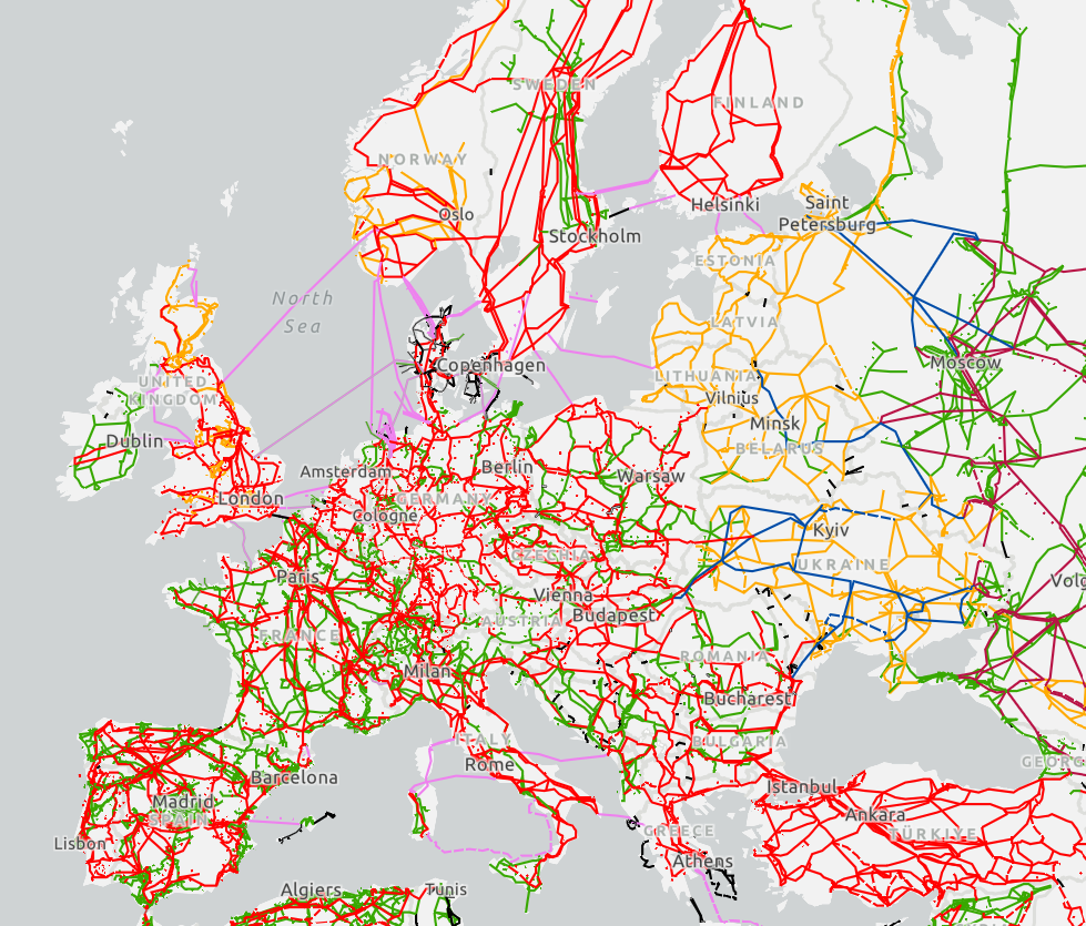 A titre d’illustration, la carte ci-dessous détaille les réseaux nationaux et les connexions entre pays :