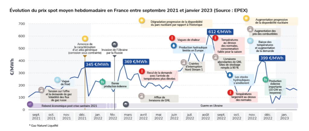 Mais à partir de fin 2021, des phénomènes et évènements externes vont mettre en avant les faiblesses de ce système en impactant fortement le comportement du marché et créant des fluctuations de prix importantes :