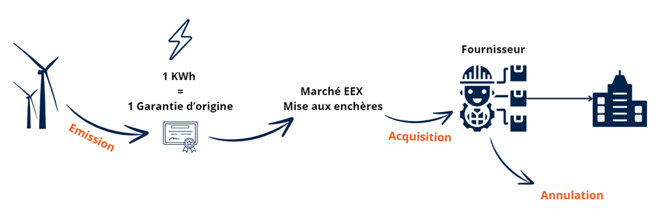 C’est la société EEX (anciennement Powernext), un organisme indépendant mandaté par l’État, qui a la charge de l’attribution, du transfert et de l’annulation des garanties d’origine de l’électricité.